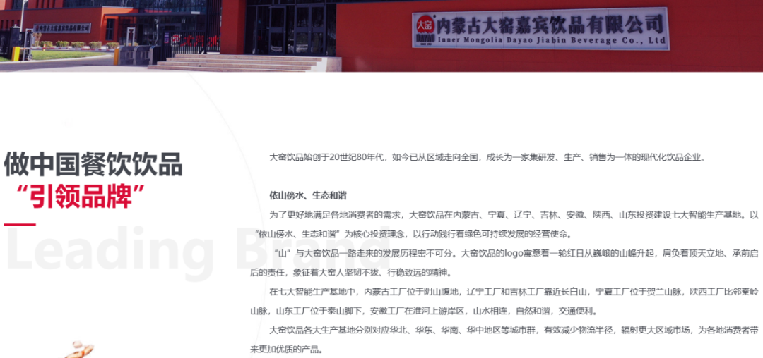 大窑饮品全称为内蒙古大窑嘉宾饮品有限公司,由王庆东创立于上世纪八九十年代的呼和浩特。2014年,大窑饮品确立了全国化品牌运营、渠道扩张、标准化生产基地建设的三大发展战略。次年,该公司正式开启全国化布局,以宁夏石嘴山生产基地为起点,先后在内蒙古、宁夏、辽宁、吉林、安徽、陕西、山东等地投资建设了七大智能生产基地。