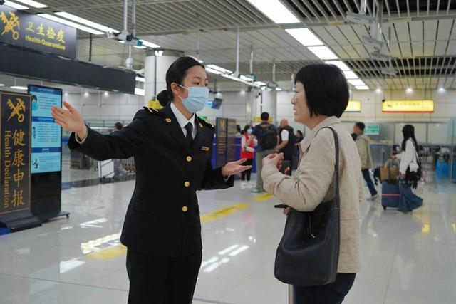 关员在为旅客提供通关咨询服务。古东文/摄